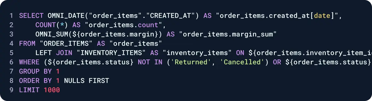 When you write SQL in Omni, you'll have SQL Super Powers, which understand and parse your query into its component logic (field definitions, joins, etc). This makes you super efficient by allowing you to build new queries via the UI and reuse the logic in the future.
