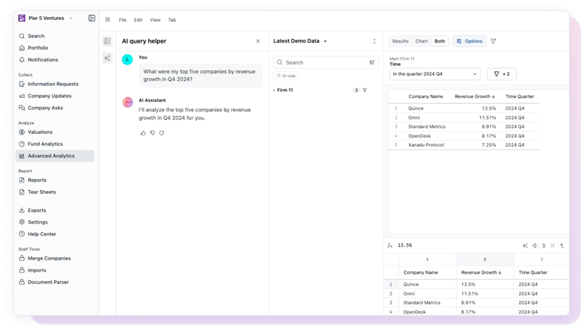 Give users the power to build their own analyses with AI, Excel calcs, SQL, or a point/click UI — right inside of your product.