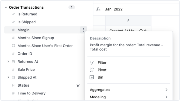 Build customer trust with consistent, accurate numbers. Omni’s semantic model lets you define metrics once and use them across every customer instance.