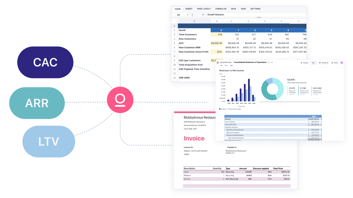 Bring data from your ERP, HRMS, CRM, and more into your data warehouse. Model financials, pipeline, headcount, and more from a single connected source of truth.